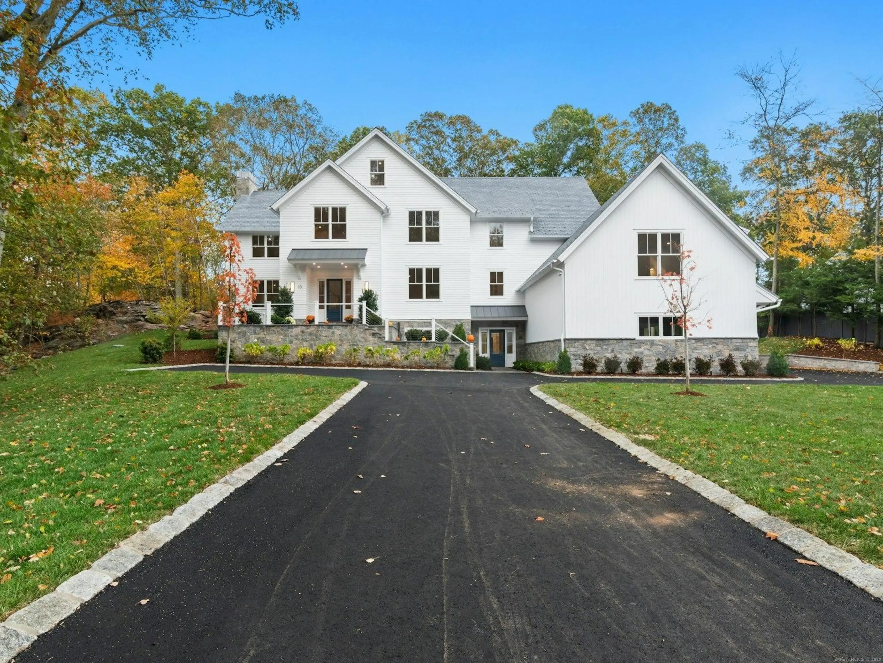 This exceptional Shingle Style Colonial blends form and function to inspire elegant everyday living. Set on a private 1.37-acre lot, it offers four levels of thoughtfully designed space by Daniel Conlon Architects with refined millwork details & finishes throughout. The main level features a two-story foyer, formal living and dining rooms, a chef's kitchen with walk-in pantry, and a great room opening to an expansive terrace overlooking the heated pool and spa. Highlights include a library, home office, 1st floor guest suite, and elevator. The primary suite offers a fireplace, spa-like bath, dressing room, and two walk-in closets. Three additional ensuite bedrooms and laundry complete the second floor. A flexible upper level includes a fifth bedroom/Flex room and large walk-in storage. The full walkout lower level offers a playroom, gym, full bath, wet bar, mudroom with direct access to the three-car garage, pool & terrace. All just minutes to downtown, train station, beaches and the many amenities Darien has to offer that make this gold coast community so desirable.