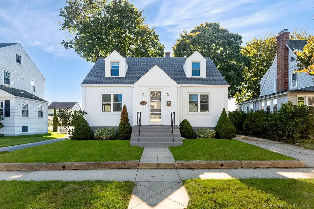 Welcome to this charming 3-bedroom, 1.5-bath Cape Cod-style home, filled with character and curb appeal. Upon entry, the foyer opens to a spacious living room featuring hardwood floors and a ceiling fan through an elegant French door. The kitchen is generously sized, offering ample cabinets and counter space, and can accommodate a small table for casual dining. A rear door provides access to a private yard and deck, perfect for outdoor gatherings. The formal dining area is ideal for entertaining guests. The main level includes a full bath and a cozy bedroom, while the upper level houses two additional bedrooms and a convenient half bath. The partially finished basement offers versatile space suitable for a home office, gym, or recreation room, along with a laundry room and an unfinished storage area for mechanicals. The home also boasts a detached 2-car garage and a level property, enhancing its appeal. It is conveniently connected to city sewer and water, and located close to shopping, dining, and more.
